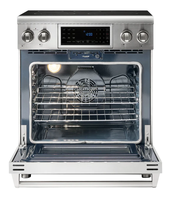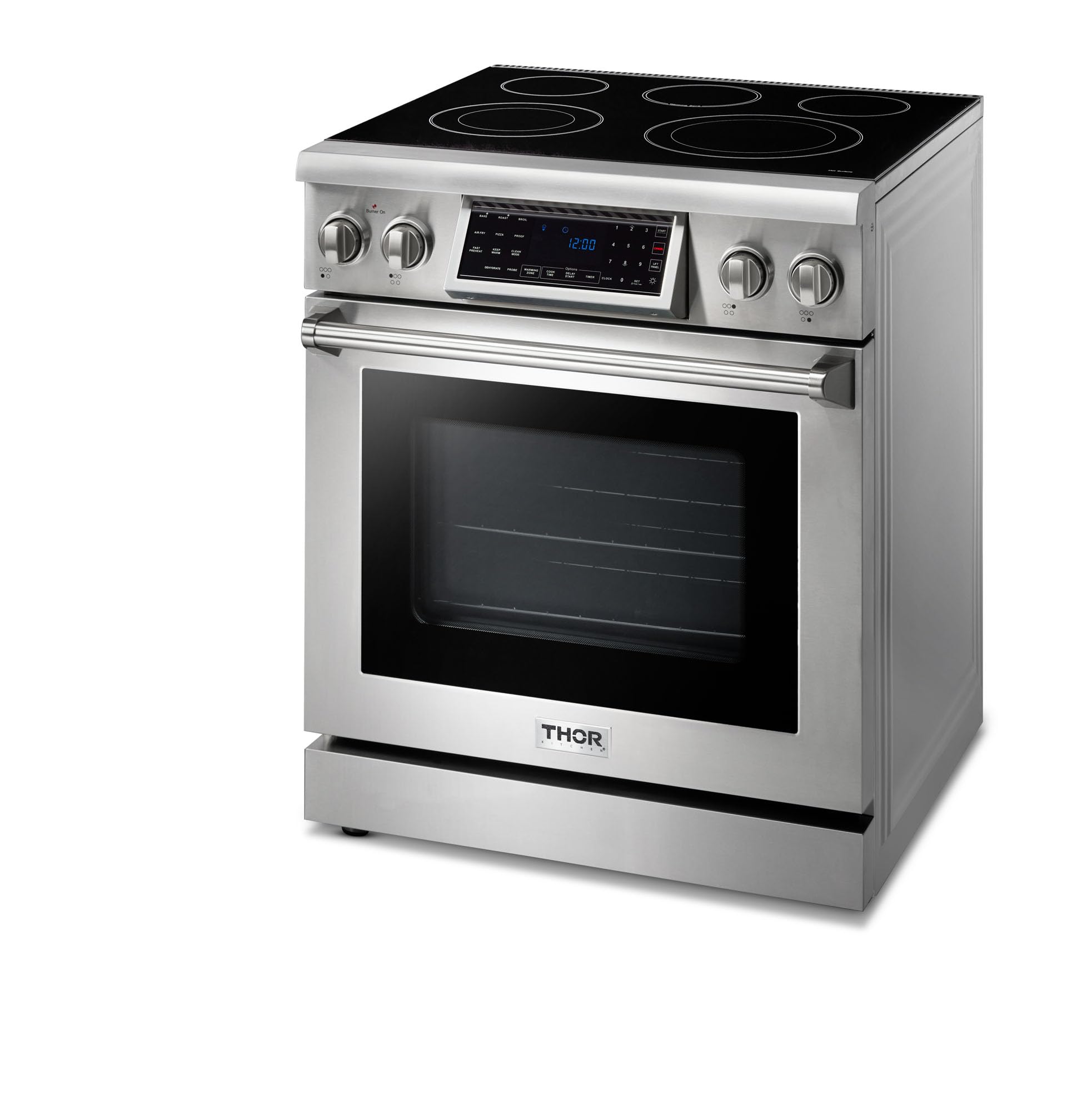THOR Kitchen offers the power and performance of a premium professional appliance at a practical price. The THOR Kitchen 30 Inch Tilt Panel Professional Electric Range is a stainless-steel machine designed with professional features and functionality. With easily accessible tilt panel touch controls, high-powered elements, and commercial convection fan, this electric range takes everything from prime rib to snickerdoodles to the next level.